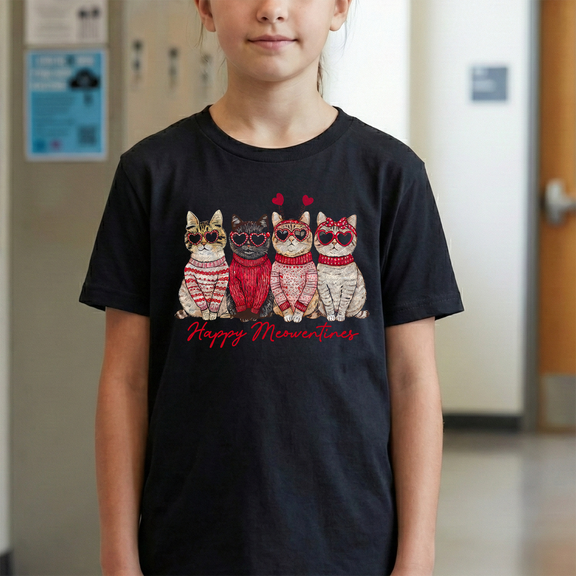 From the stoic Void in the red turtleneck to the Orange Tabby sporting antenna-heart headgear, this crew radiates an energy that says, "We tolerate your affection because you feed us". The bold "Happy Meowentines" script anchors the design, making this the perfect uniform for Galentine's Day, singles awareness day, or any day you want to prove you have impeccable taste in companions.