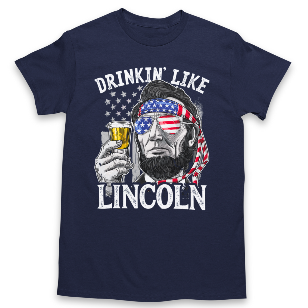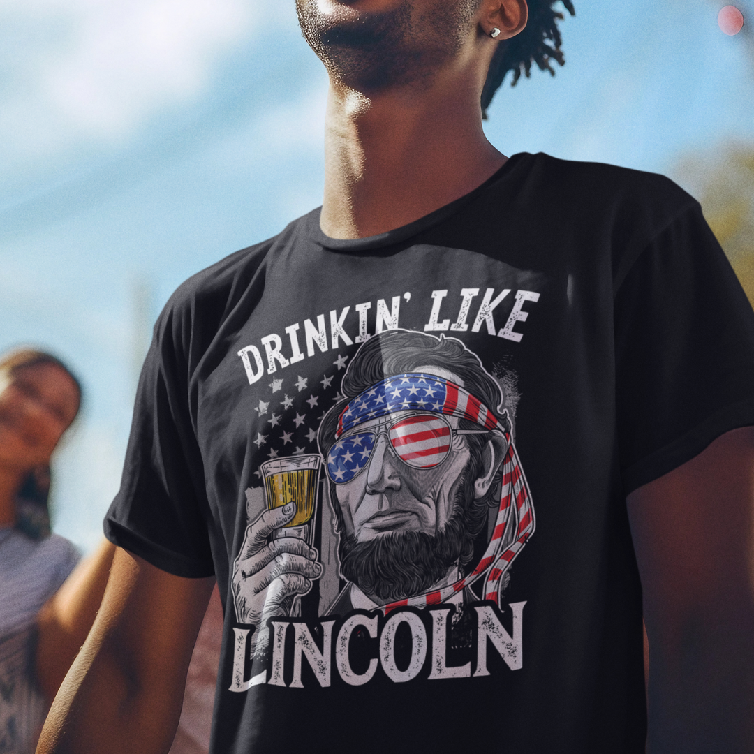 - Patriotically Fun Design: "Drinkin' Like Lincoln" combines the best of American history with a love for good times – because even Honest Abe would appreciate a good laugh.