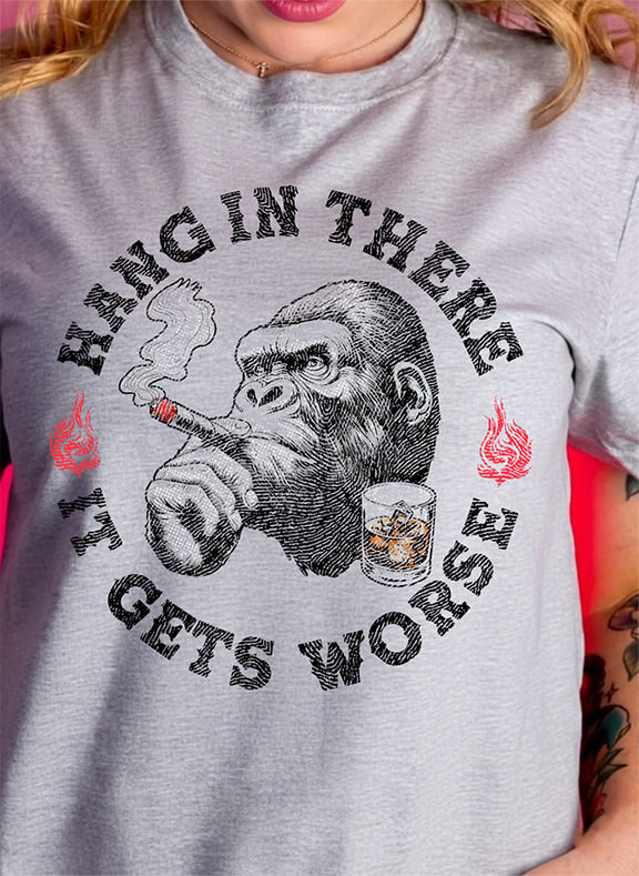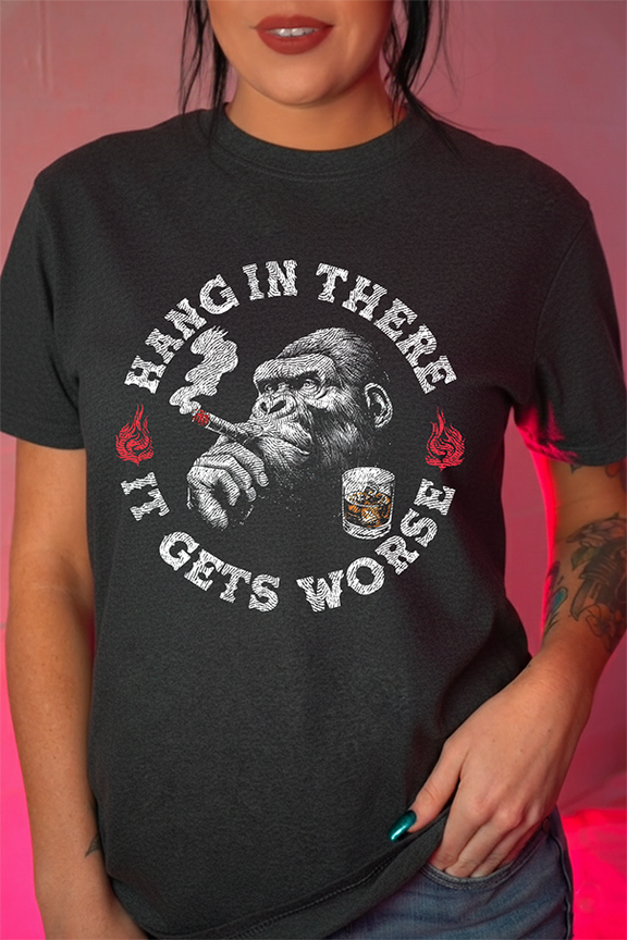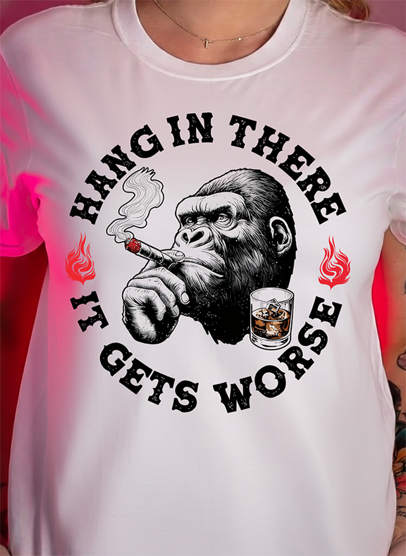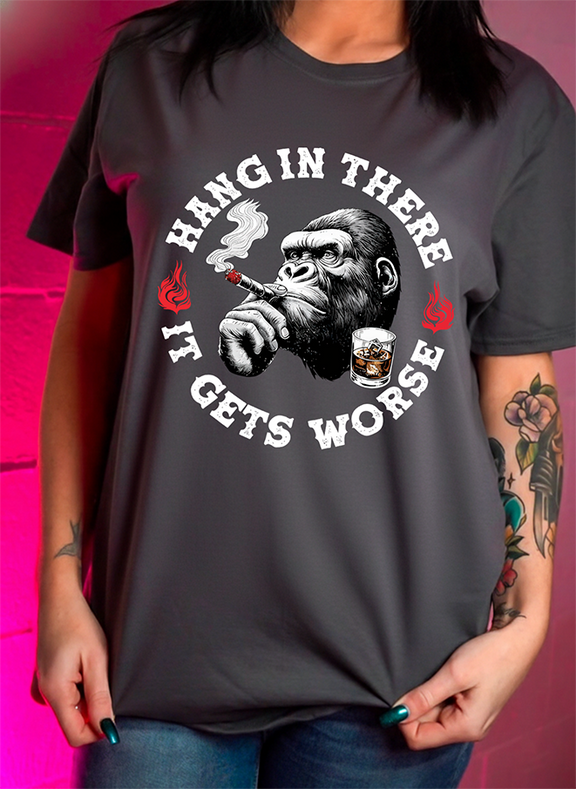 Witty Wordplay: Features the ironic "Hang In There" mantra, followed by the blunt truth: "It Gets Worse".