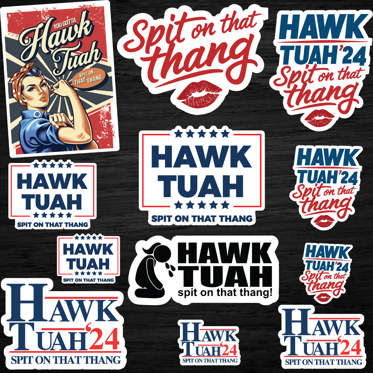 Hawk Tuah Spit On That Thang Viral Sticker Pack - 12 Die Cut Hawk Tuah Stickers