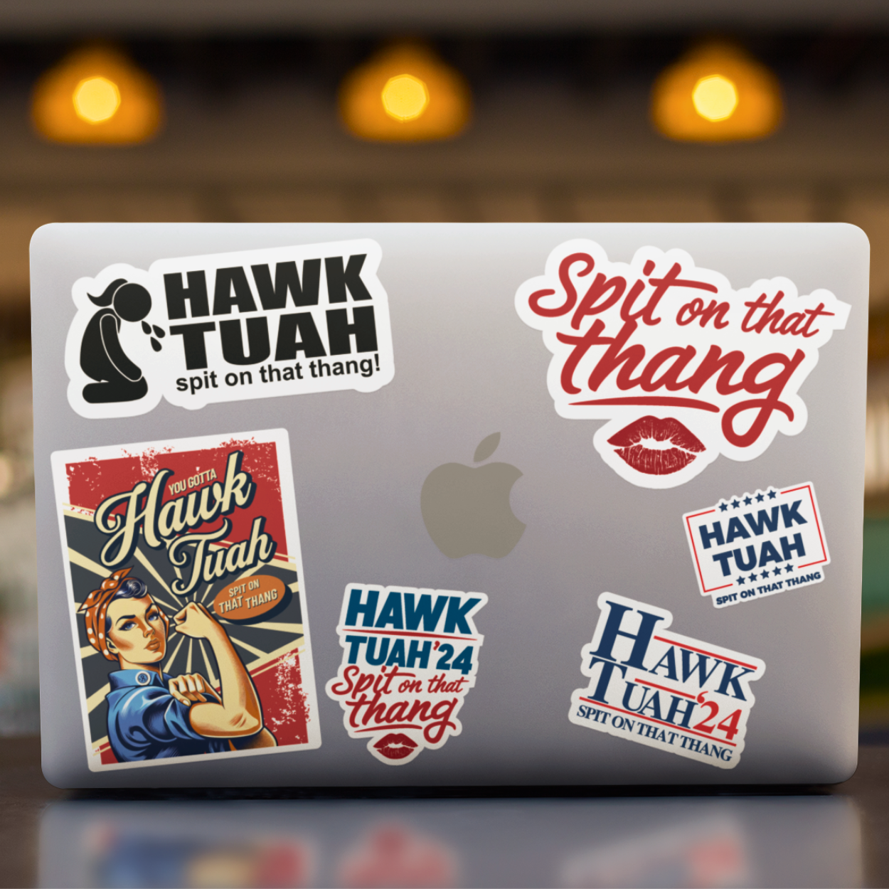 Show off your sense of humor and join the meme culture with these fun and unique stickers. Get your pack today and give your belongings that 'hawk tuah' flair!