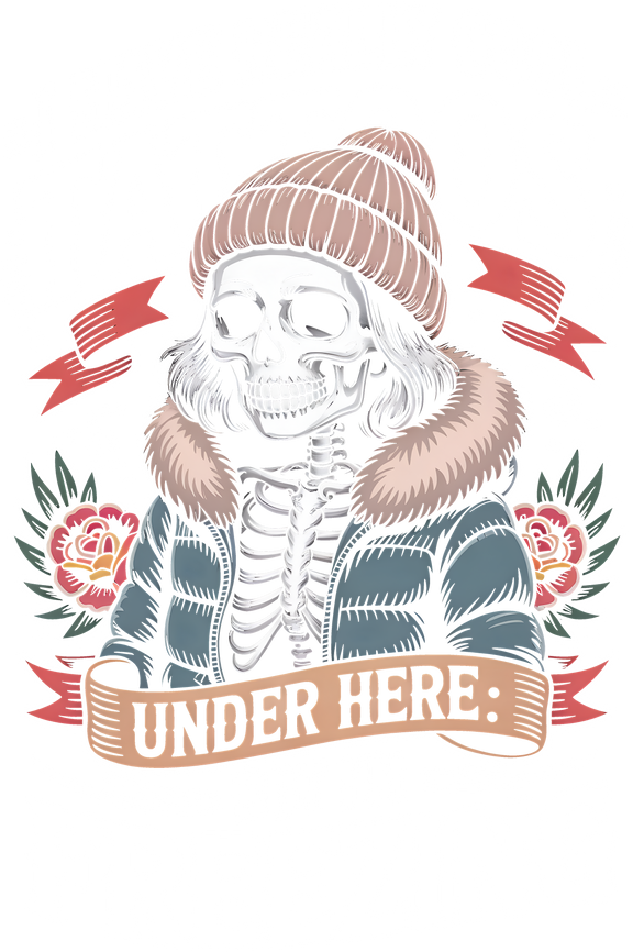 This hilarious graphic tee features a cozy winter skeleton with roses, a beanie, and a puffer jacket — the perfect mix of edgy, cute, and COLD.