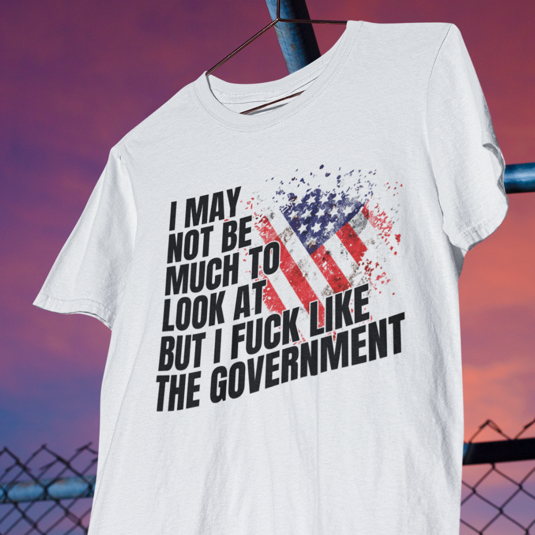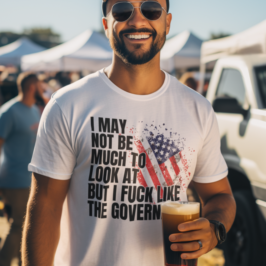 Alright, you bold and brash truth-tellers, get ready to rock the most unapologetically audacious shirt out there with the "I May Not Be Much to Look At, But I F**k Like the Government" Graphic Tee!