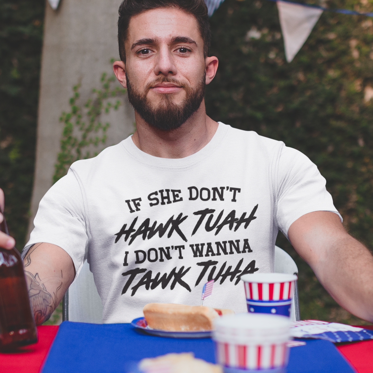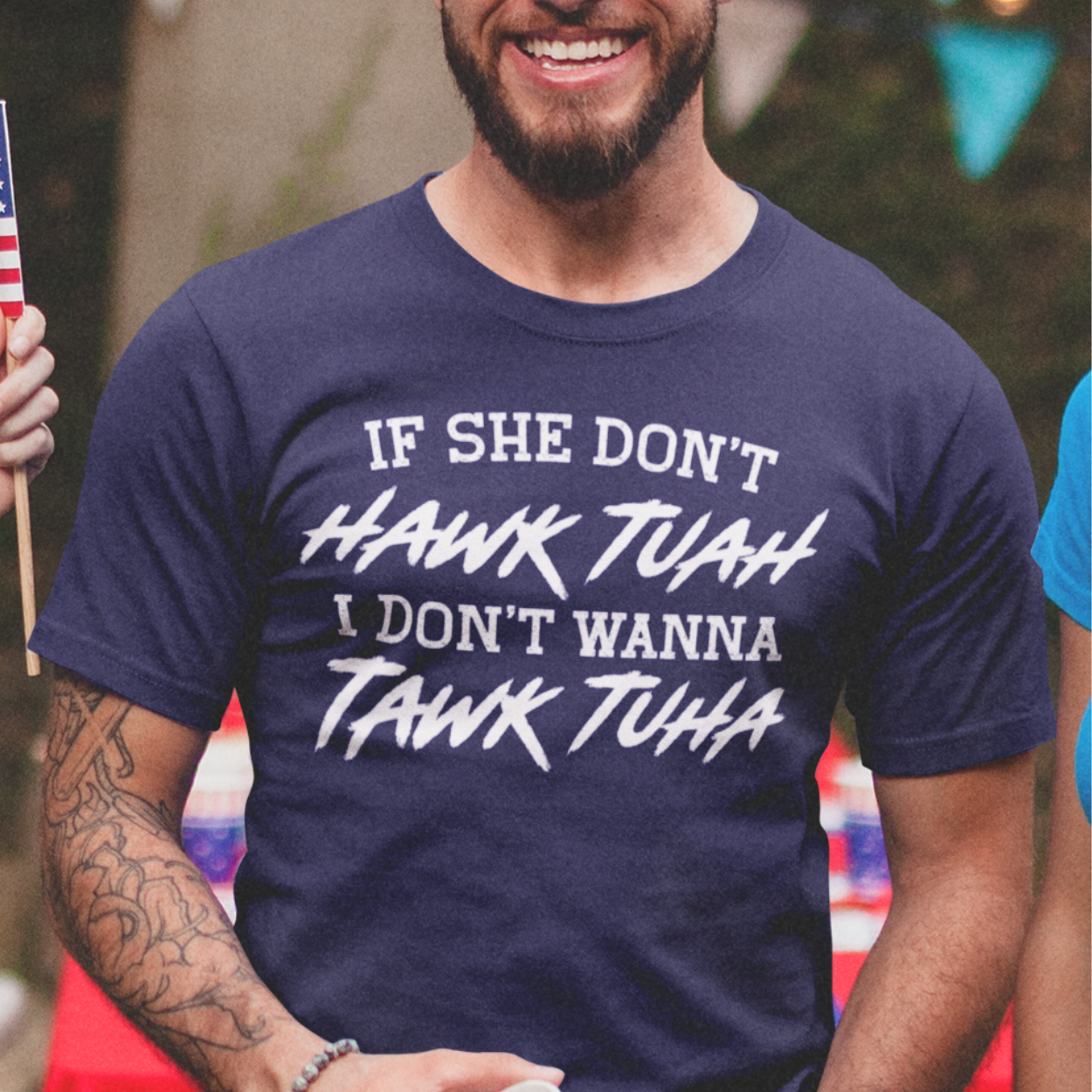 Dive into the Hawk Tuah girl craze with our "If She Don't Hawk Tuah” shirt, stating “If She Don’t Hawk Tuah, I Don’t Wanna Tawk Tuha/Tuah”
