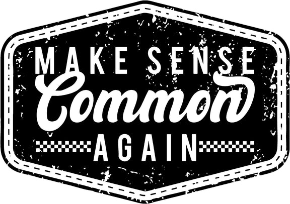 Our Make Sense Common Again DTF transfer features a bold, vintage-style badge design with distressed detailing and crisp black-and-white contrast. Perfect for creating statement tees your customers will love.