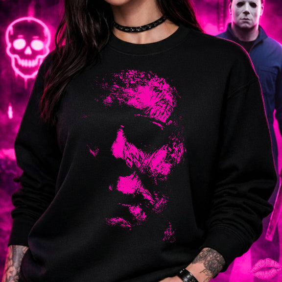 This grunge-style horror face design brings serious attitude with a bold pink finish that pops like crazy on black.