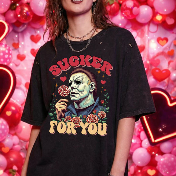 This “Sucker For You” Horror Valentine DTF Transfer blends dark romance with killer attitude, featuring a horror-inspired character paired with roses, hearts, and a twisted Valentine aesthetic.