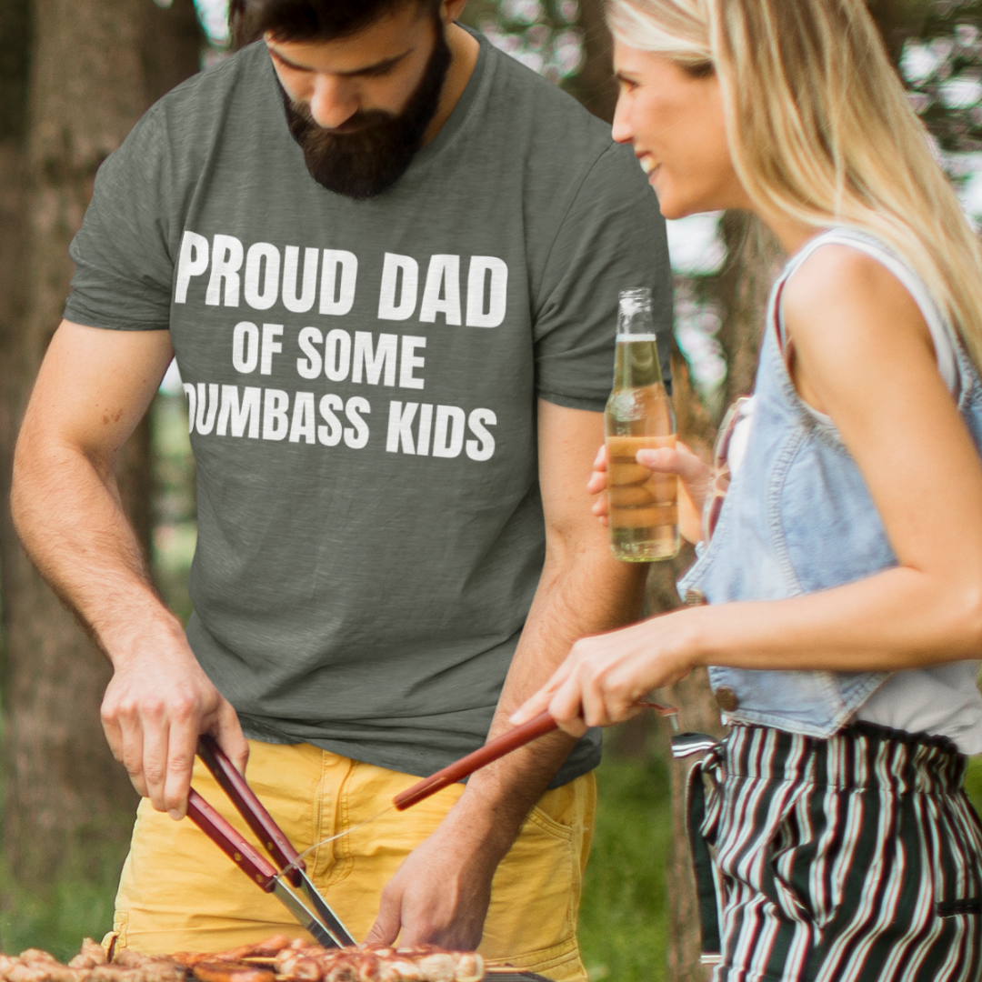 - Bold and Hilarious Design: Featuring the straightforward and side-splitting declaration "Proud Dad of Some Dumbass Kids," this shirt is designed to make people laugh out loud and nod in agreement.