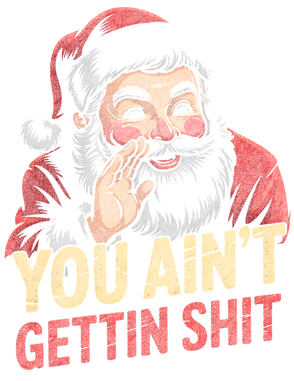 This bold and hilarious You Ain’t Gettin’ Shit Santa DTF transfer brings the perfect mix of sarcasm and holiday cheer. With a retro-style Santa whispering the truth no one else will say, this design is a bestseller for holiday parties, boutique drops, and your spicy Christmas customers.