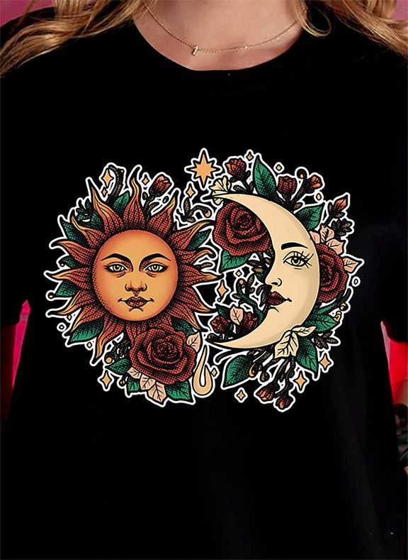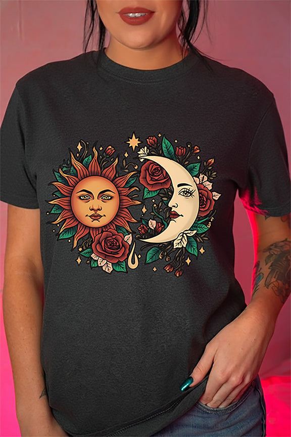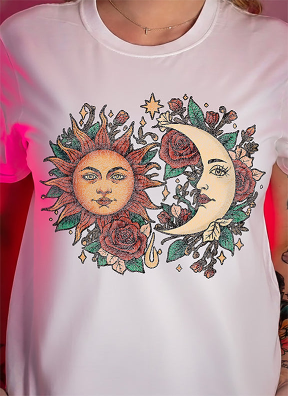 Capture the magic of the cosmos with this intricate Sun and Moon design. Representing the perfect duality of day and night, this transfer features personified celestial bodies intertwined with lush, vintage-style roses. It’s an elegant, artistic statement for those who feel a deep connection to the universe and its natural rhythms.
