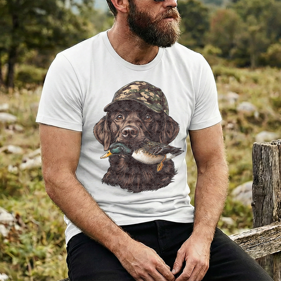 Decked out in a woodland camo snapback and sporting a fresh Mallard catch (soft mouth engaged, obviously), this transfer is the ultimate upgrade for your gear. Whether you're customizing a hoodie for the lodge or a tee for the off-season, this applies easily and wears tough.