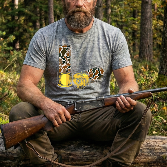 Enter the Camo Shotgun Shells DTF transfer. This isn't some clip-art afterthought. We're talking twin shells, brass bases gleaming, with hulls decked out in full woodland camouflage. It’s the perfect graphic for when you need your apparel to match your level of intensity.