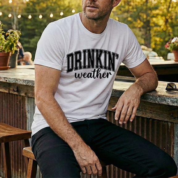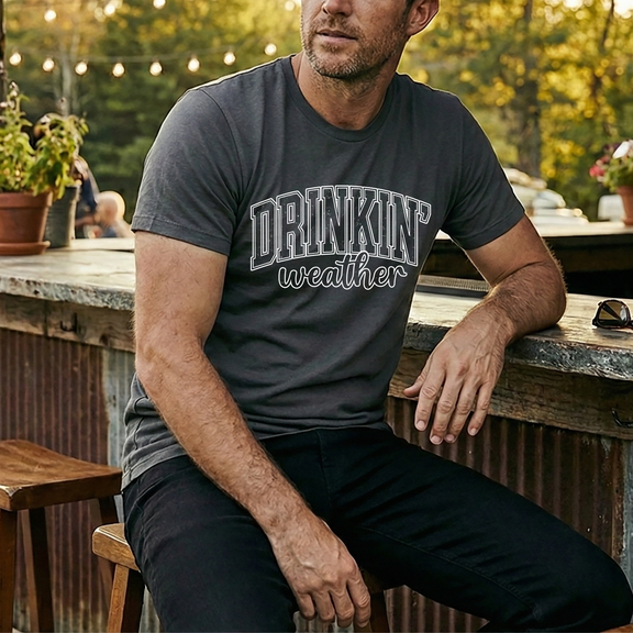 Make your meteorological stance official with this bold DTF transfer. We’ve designed this with a distressed, collegiate varsity font for the word "DRINKIN'" because hydration is a sport, and you are an athlete. We paired it with a relaxed, cursive script for "weather," because once the can is cracked, the vibe should be nothing but smooth.